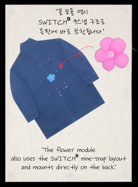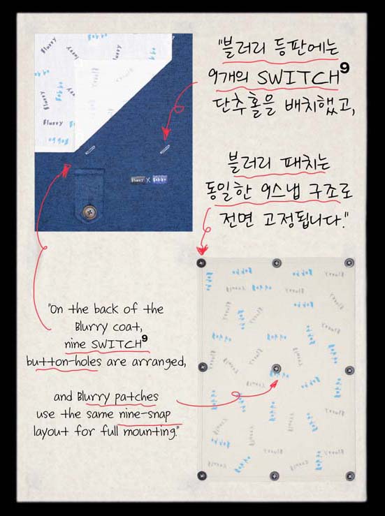SWITCH⁹은 등판에 배치된 9개의 단추구멍을 통해
