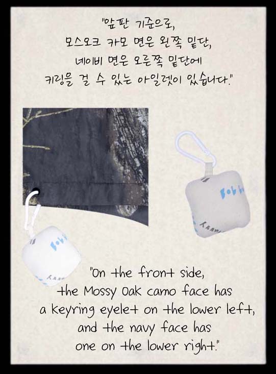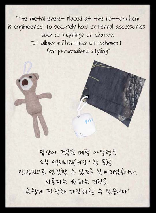 - 통기성 확보 및 키링/액세서리 부착 가능