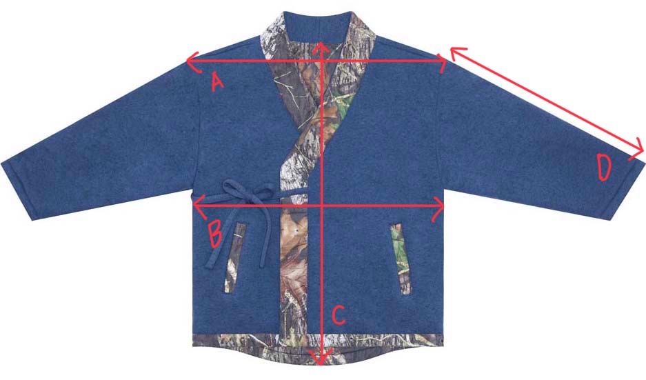 Note: Back length (C) is 4–5cm longer than the front