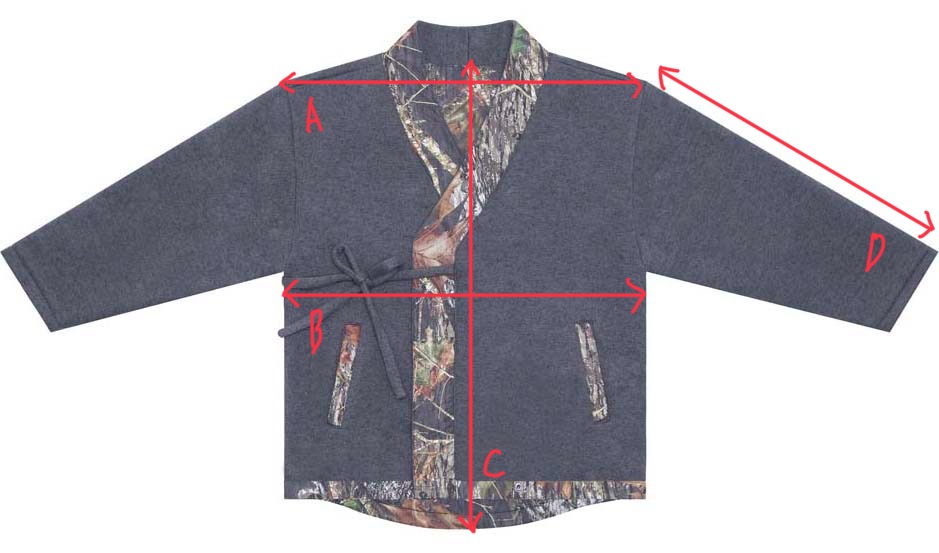 Note: Back length (C) is 4–5cm longer than the front