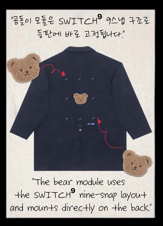 SWITCH⁹은 등판에 배치된 9개의 단추구멍을 통해